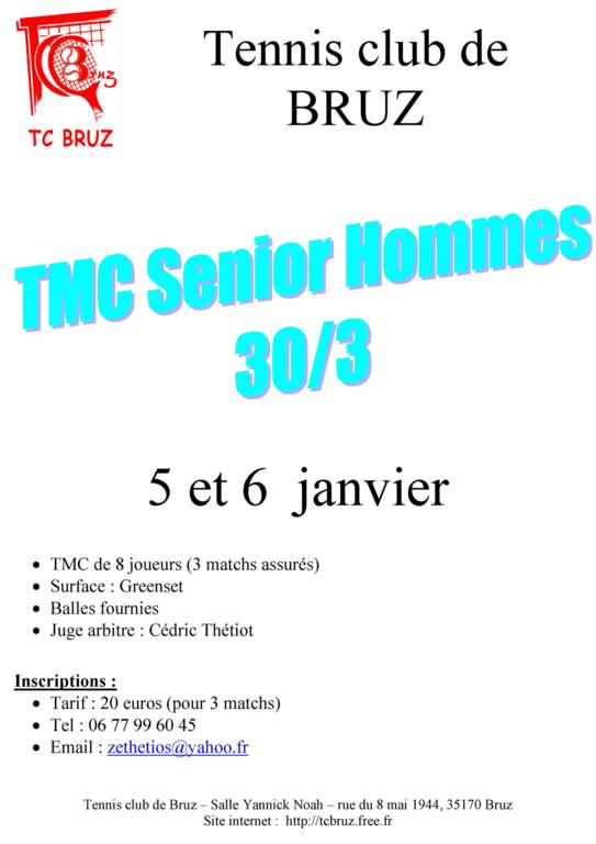 Le tennis club de Bruz organise un TMC Hommes, les 5 et 6 janvier, pour les joueurs classés 30/3.